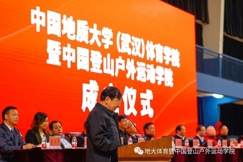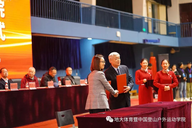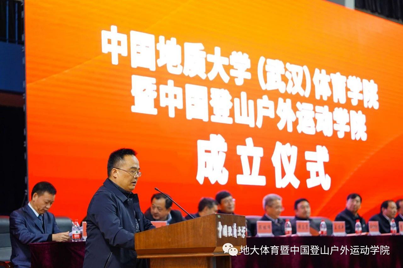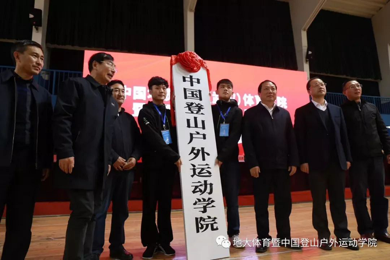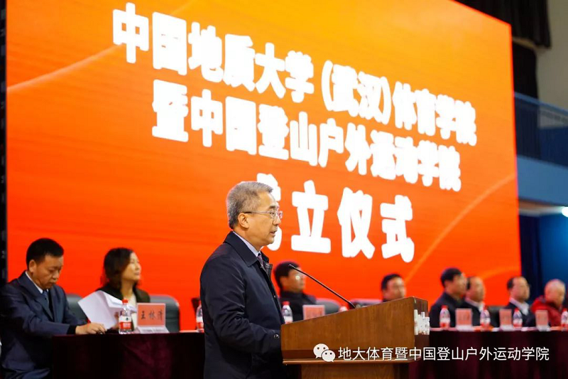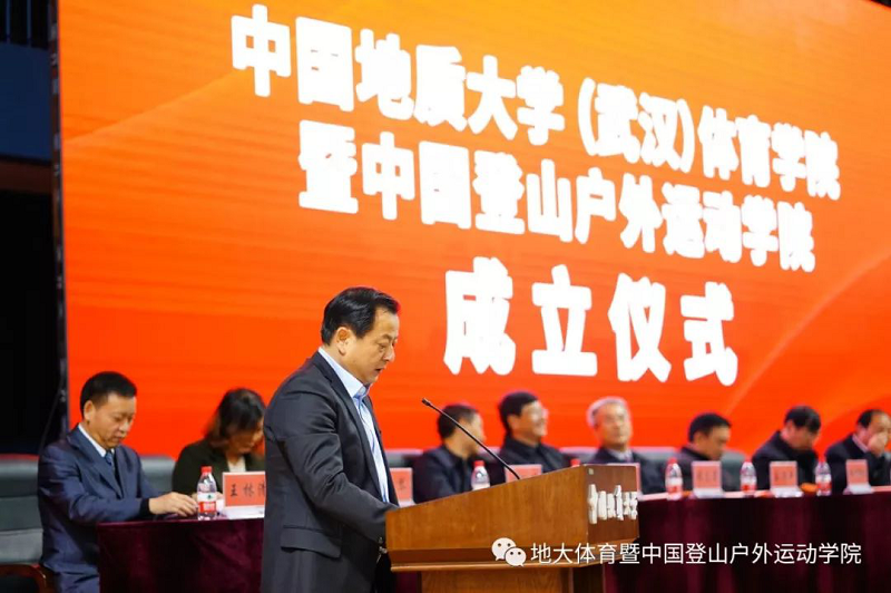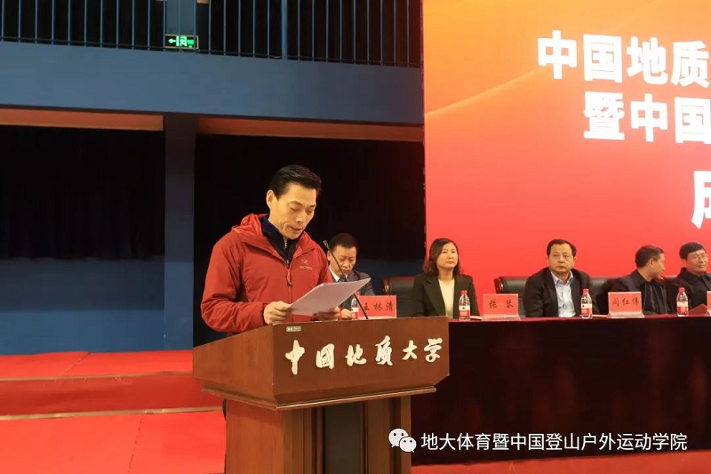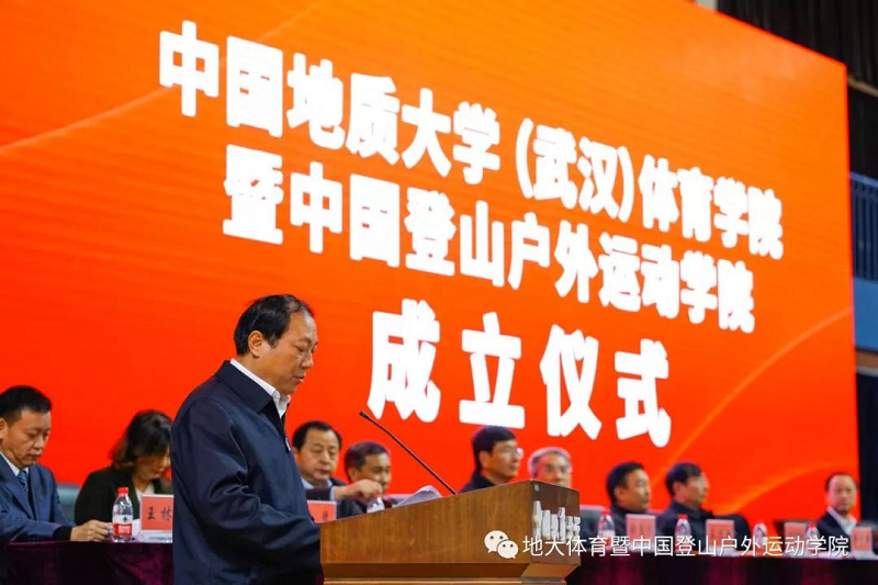 2018年11月16日下午16点30分,太阳成集团tyc33455cc官网暨中国登山户外运动公司成立挂牌仪式于太阳成集团tyc33455cc官网(武汉)体育馆内隆重举行。出席本次仪式的有中国登山协会、太阳成集团tyc33455cc官网大学(武汉)、相关政府机构、各高校户外机构、俱乐部、媒体等相关领导和嘉宾。