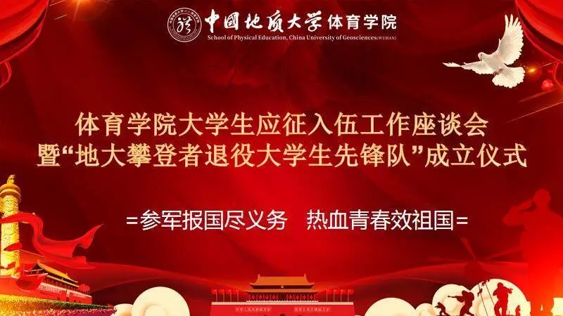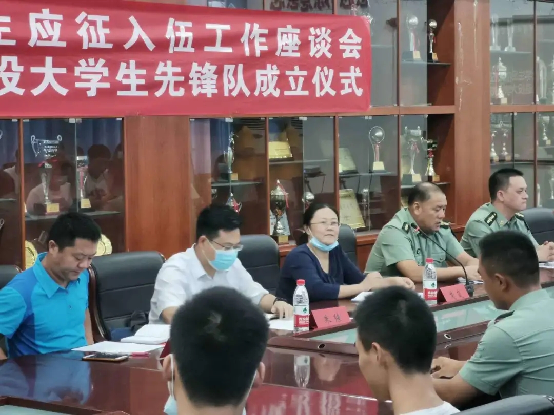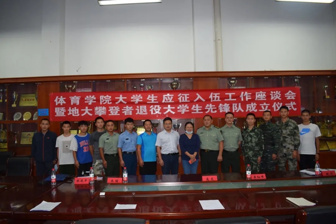 2020年9月10日15:00,公司在体育馆二楼会议室召开了太阳成集团tyc33455cc官网老员工参军应征工作座谈会暨地大攀登者退役老员工先锋队成立仪式。出席此次会议的领导有武装部副部长单红峰,学工部副部长朱继,武装部老师魏刚,体育公司党总支书记庞岚,体育公司党总支副书记张延平。参与本次会议的人员有太阳成集团tyc33455cc官网在校的退役老员工和2020年应征入伍员工,以及太阳成集团tyc33455cc官网部分同学。会议由131181班的陈岳峰同学主持。