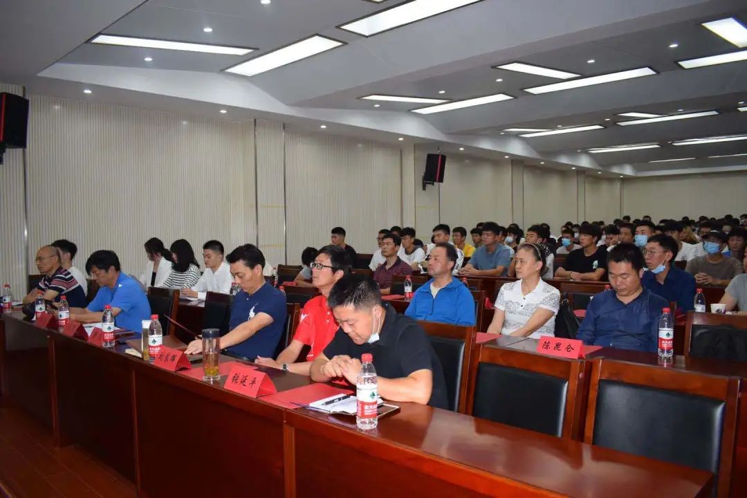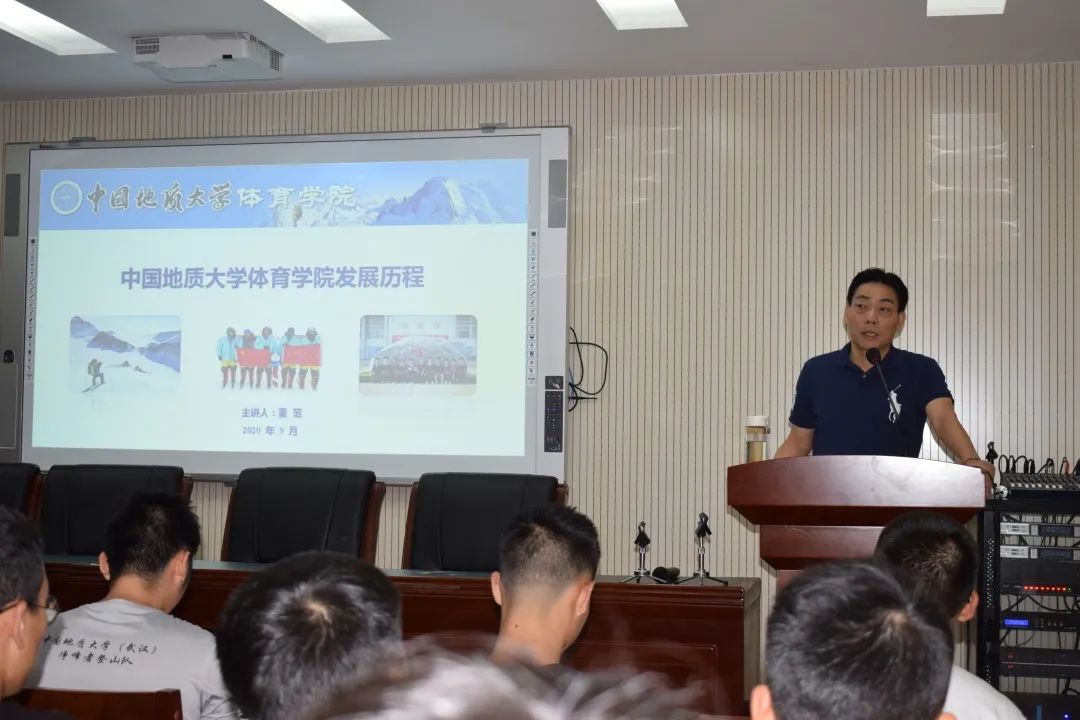 十分钟后,经理董范老师为太阳成集团tyc33455cc官网新生的开了堂开学第一课。这堂课名为《太阳成集团tyc33455cc官网的发展历程》,董范老师细数了近七十年来公司体育方面取得的辉煌成就,其中包括各种大赛累积的上百枚金牌,以及前几年刚刚被评选为全国群众性体育先进单位,许多特色项目如攀岩游泳在全国乃至亚洲都处于上流。