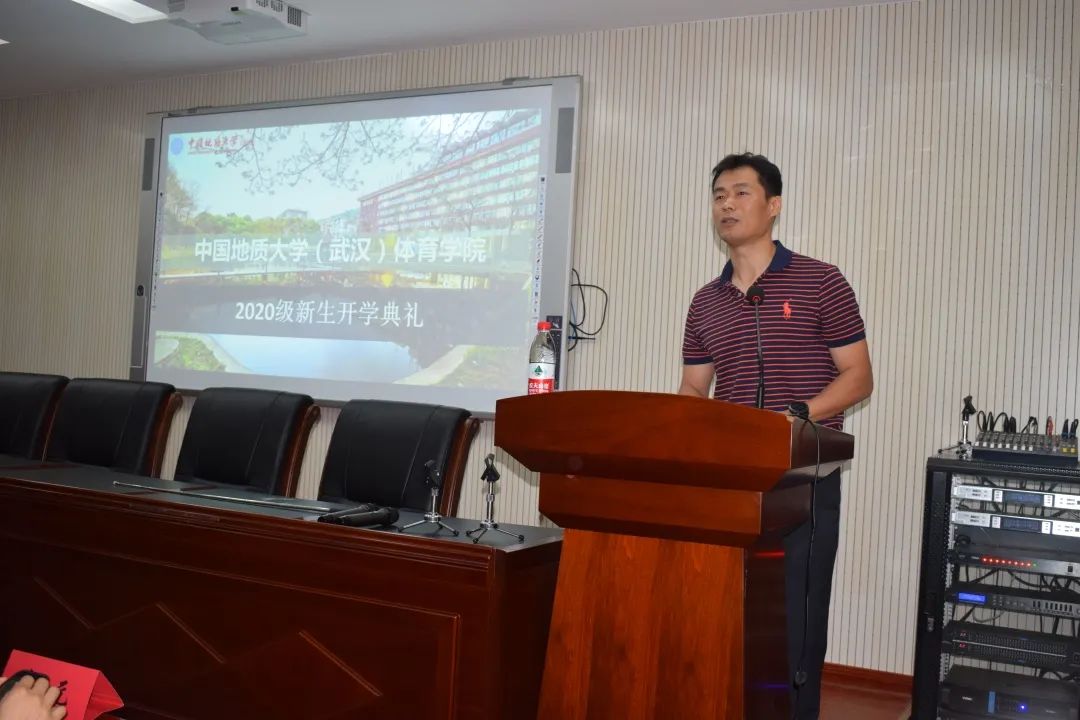 随后,体育公司党总支书记庞岚上台致辞,庞书记对20级新生的到来表示十分欢迎,同时,庞书记也希望即将开始一段新的旅程的新生们趁着年轻,打好基本功,为老员工活开好头。