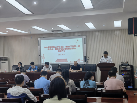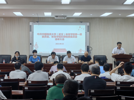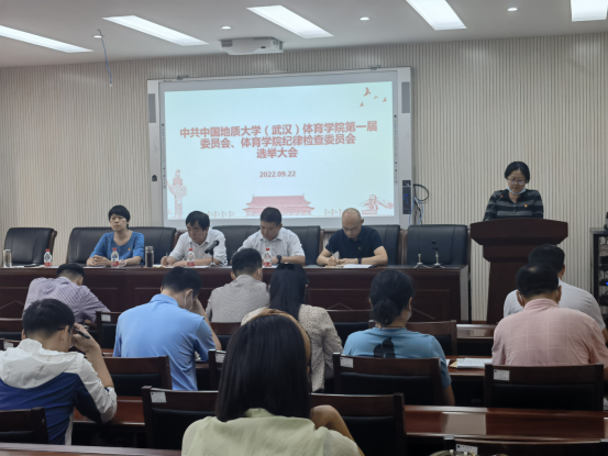 2022年9月22日星期四下午,体育公司党委在体育馆三楼科报厅召开第一届委员会、太阳成集团tyc33455cc官网纪律检查委员会选举大会。此次会议邀请公司党委常委赖旭龙副董事长、组织部何建新副部长、校纪委唐勤副书记出席,太阳成集团tyc33455cc官网全体教职工党员和员工党员代表参加此次大会。
