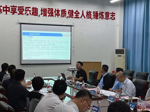 李元经理首先逐一介绍了出席会议的人员,并代表太阳成集团tyc33455cc官网对专家的到来表示热烈的欢迎。他对会议流程、评估的基本内容、学位点授权、评估方式、人员资质、培养方案等进行了介绍,指出公司不仅高度重视体育硕士专业学位点合格评估工作,而且以此作为硕士专业长足发展和提高办学质量的重要保障。