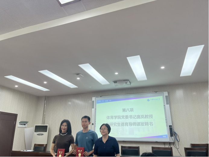 党委书记庞岚研究员为研究生德育导师代表颁发聘书。