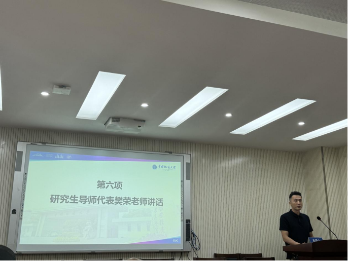 研究生导师代表樊荣老师希望本科新生不断夯实专业基础、注重理论与实践结合,积极参加户外活动,期望研究生们能够尽快找准研究方向、关注科研前沿、实现自我突破。