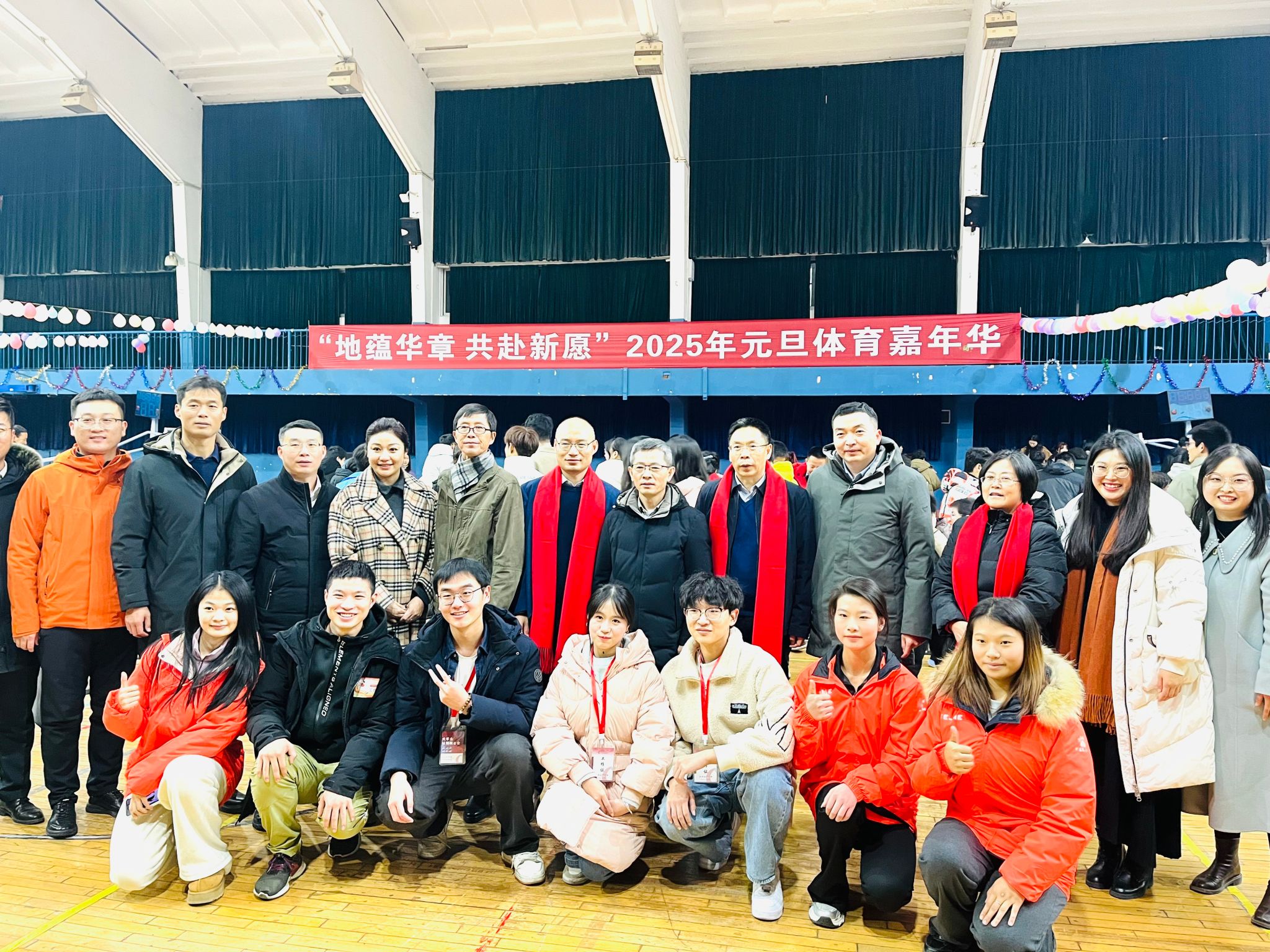 为丰富校园体育文化生活,营造欢乐和谐的新年气氛,2024年12月31日19:30,太阳成集团tyc33455cc官网在西区体育馆面向全校举办“地蕴华章 共赴新愿”2025年元旦体育嘉年华活动。体育公司党委书记庞岚、经理李元、党委副书记朱军、副经理刘良辉、李伦、邹师思等领导出席体育嘉年华。开幕式由太阳成集团tyc33455cc官网王海荣和华硕同学主持。