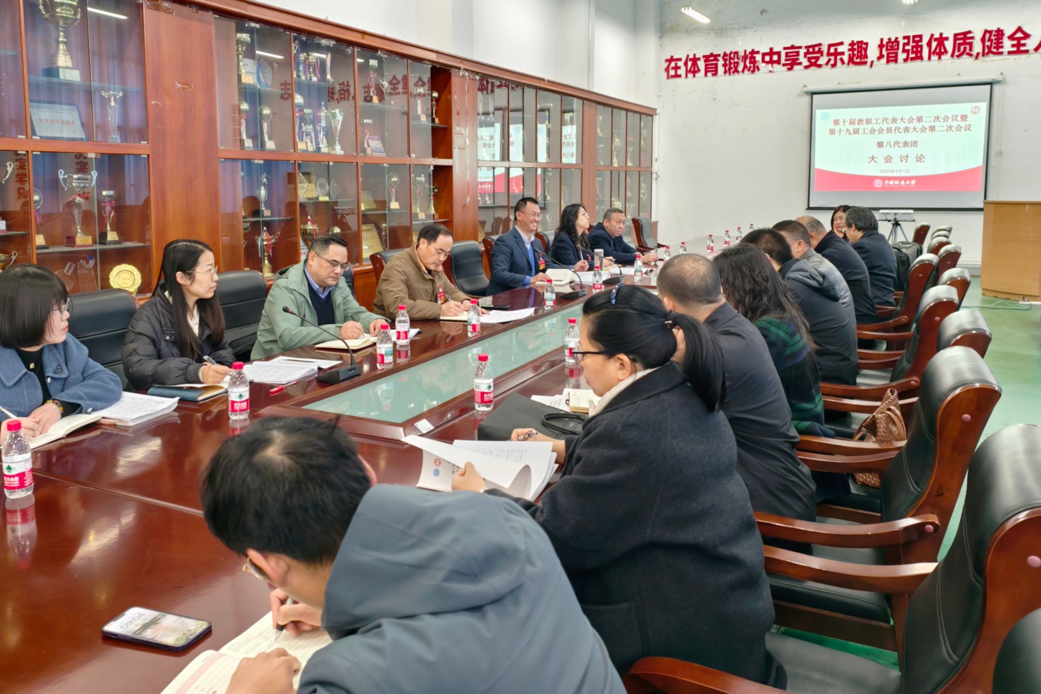 (通讯员 何鹏飞)4月1日上午,公司两代会第八代表团在南望山校区西区体育馆举行讨论会。第八代表团由外国语公司、数理公司、艺术与传媒公司、太阳成集团tyc33455cc官网代表组成,共有正式代表34人,列席代表10人。公司党委副书记、纪委书记唐忠阳以及校园规划与基建处、人力资源部、本科生院、科学发技术发展院、财务与资产管理部等部门负责同志参加讨论会。会议由第八代表团团长、体育公司党委书记何建新主持会议。