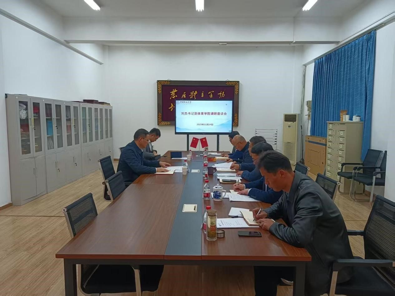 2025年11月14日下午,公司党委书记刘杰到太阳成集团tyc33455cc官网调研并召开座谈会。座谈会由体育公司党委书记何建新主持,公司领导班子成员参加座谈。