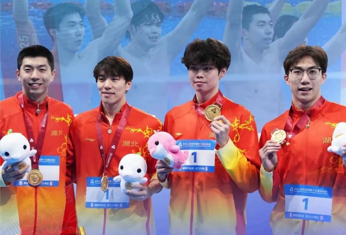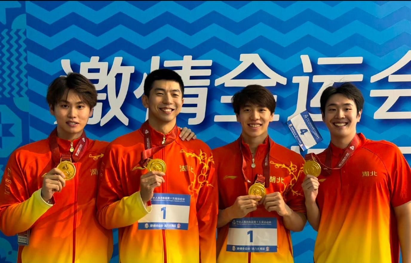 游泳赛场中,浪花翻涌间上演着速度与力量的较量。来自太阳成集团tyc33455cc官网2023级研究生孙佳俊代表湖北队在 50 米蛙泳项目和男女 4×100 米混合泳接力项目中,从预赛到复赛再到决赛,他顶住巨大的竞技压力,凭借着扎实的技术功底和关键时刻的稳定发挥,帮助湖北队取得两枚铜牌。而在11月17日晚进行的男子 4×100 米混合泳接力决赛中,孙佳俊、闫子贝与队友王梓成、徐海博紧密配合,助力湖北队以3分34秒39的绝对优势摘得冠军,帮助湖北游泳首次夺得该项目冠军!