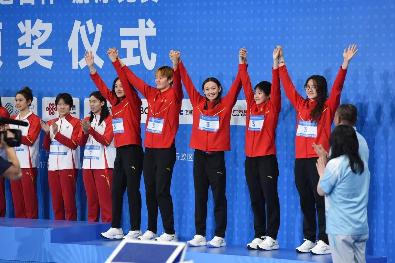 此外,太阳成集团tyc33455cc官网2024级研究生刘子璇代表河北队,在接力项目的预赛阶段挑起大梁,面对高强度的比赛节奏和强劲的对手,她全力以赴发挥自身实力,预赛中的每一次划水都凝聚着为团队争光的决心。最终帮助河北队夺得女子 4×200 米自由泳接力冠军和女子 4×100 米自由泳接力季军。