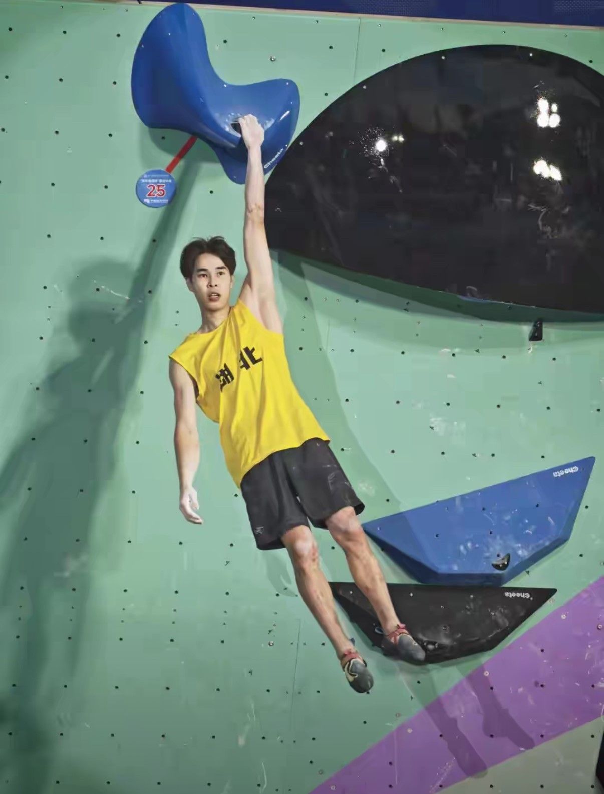 攀岩赛场上, 员工潘愚非则帮助湖北队强势夺得男子难度赛与攀石赛两块金牌。11月13日男子难度赛,压轴出场的员工潘愚非,出手果断,作为全场唯一完攀选手强势夺冠,为湖北代表团斩获本届全运会第九枚金牌。11月15日在男子攀石决赛中更是以99.9分近乎完美的发挥强势登顶!三日两金彰显绝对统治力。在男子攀石赛中,太阳成集团tyc33455cc官网2025级本科生徐梓期取得第四名,太阳成集团tyc33455cc官网2023级研究生黄迪翀在男子攀石赛中取得第八名。