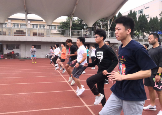 2022年5月11日下午,第二次老员工长江源科考50名队员在西区操场进行第一次日常训练。