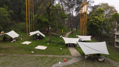 当天清晨时分,老师和同学们就陆续到达北区拓展基地,按照设计方案开始搭建活动场景。下午三点,营会活动正式开始,体育公司党委书记庞岚和研究生秘书李春卉出席并参加开营仪式。庞书记在开营仪式中发表讲话,对同学们的组织工作给予高度肯定,同时也表达了对本次课程实践活动的认可。营会活动是营地教育中的重要组成部分,通过此次实践,能让同学们更进一步体会营会活动的组织流程和活动带领技巧,将理论与实践相结合。随后,由庞岚书记、李春卉老师和张毅恒老师为活动进行剪彩仪式并宣布开营。