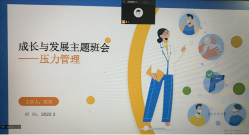 “成长与发展”主题班会主要采用“线上+线下”相结合方式,以“情绪管理”、“增强自信”、“坚定信念”、“未来规划”等为主题,覆盖大一至研三等七个年级共360多名员工。3月17日下午,2021级本科班开展“我的情绪我做主”主题班会,班长刘泽正主持会议,班会以员工心理健康为主线,围绕情绪的基本类型、情绪对人的影响、摆脱不良的情绪、共享心情的感悟等四部分。班会结束后,林子奔谈到,通过此次班会学会了摆脱不良情绪的多种方法,以后在日常生活中会及时调节好自己的情绪,增加积极情绪,减少消极情绪。