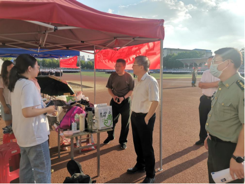 9月18日下午,董事长王焰新院士来到南望山校区西区军训场,看望慰问2022级全体新同学。公司办公室、党委武装部等相关人员参加。